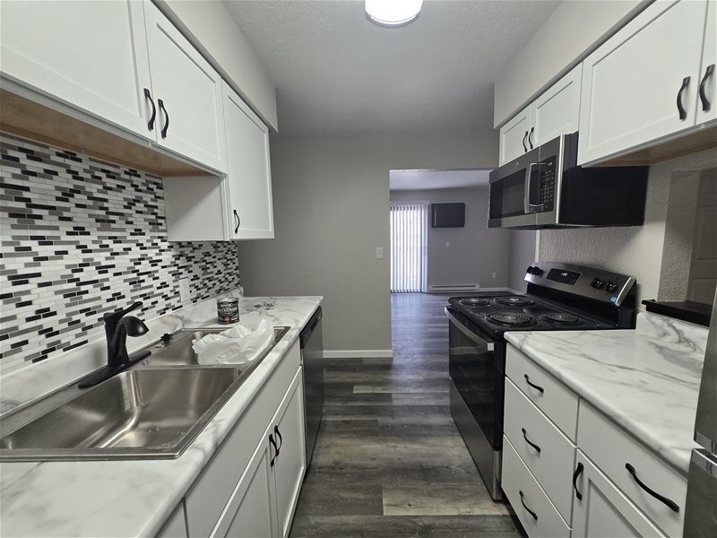 New carpet, flooring, baseboards, doors and trim. New kitchen cabinets, countertops, sink and all brand new appliances. New bathroom vanity.