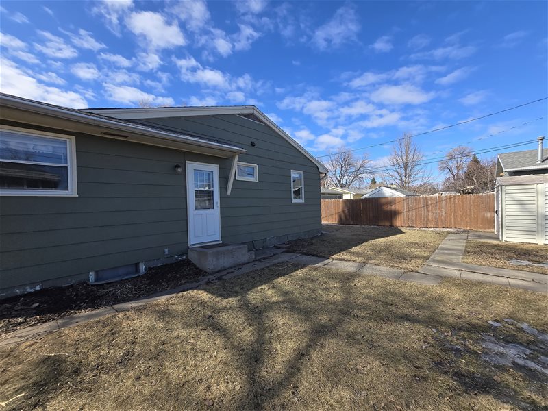 Yard space with a shed provided for lawn and snow equipment