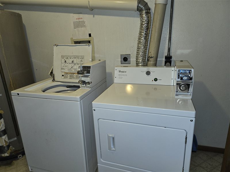 Coin operated laundry in the building on the main floor