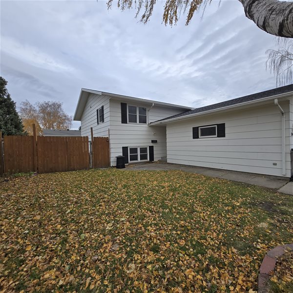 Large deck off the back of the home with fenced in yard space.
